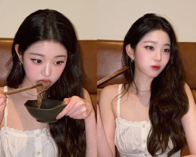 3일 장원영은 자신의 소셜미디어에 여러 장의 사진을 올렸다. 사진 속 장원영은 애교 가득한 표정으로 고기를 노른자에 찍어 먹어 눈길을 끌었다. 또 도톰한 입술로 야무지게 먹었고 과일 주스를 직접 으깨 먹으며 행복한 표정을 지었다.장원영이 고기를 들고 행복한 표정을 짓고 있다. / 장원영 소셜미디어 캡처장원영이 고기를 노른자에 찍어 먹었다. / 장원영 소셜미디어 캡처