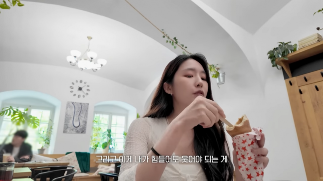 유튜브 ‘해피해은’ 채널 캡처하지만 여행 도중 그는 숨겨왔던 감정을 드러내기도 했다. 지인과 식사 중 “진짜 힘들면 살이 빠지더라. 작년에 그걸 인생에서 처음 느꼈다. 먹으려고 해도 입이 안 움직이더라”고 털어놨다. 지인이 “먹는 건 덜 힘든 거다. 진짜 힘들면 입맛도 없다”고 공감하자, 성해은은 “지금도 살찐다, 먹는다? 그건 덜 힘든 거다. 극한이 아닌 거다”라고 말했다.