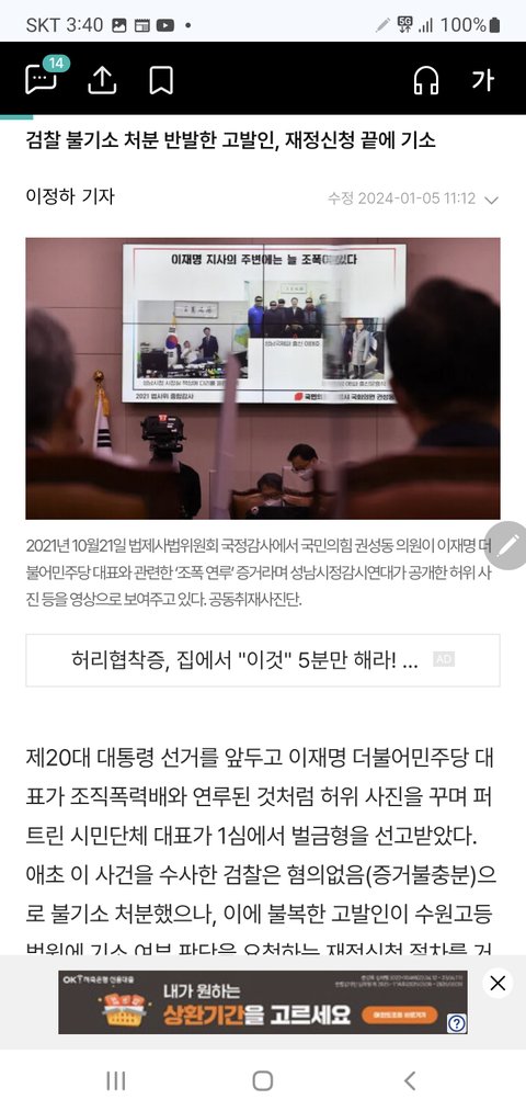 이재명 조폭연루설 허위로 판명남