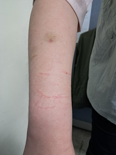 도칠이에게 폭행당해 멍들고 찢어지고 피나고 난리임.