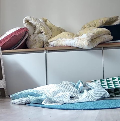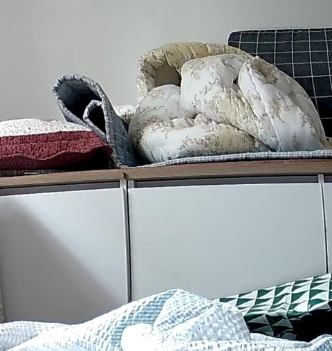 그래서 이불밖으로 나와 이불위에서 취침함.