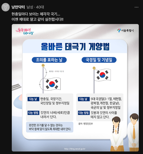 왼쪽이 맞다. 현충일엔 ‘조기’로 다는 거다.