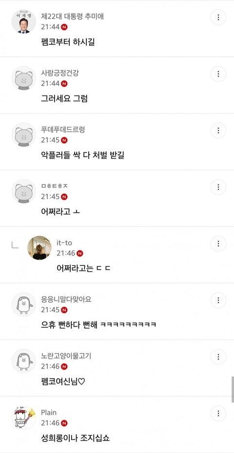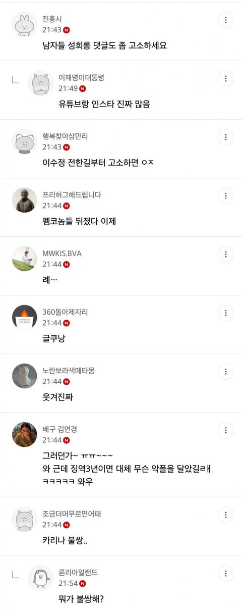 ㅋㅋㅋㅋㅋ저렇게 댓 달지만 가장 심하게 욛하던게 여시잖음 신고먹을 애들 반임