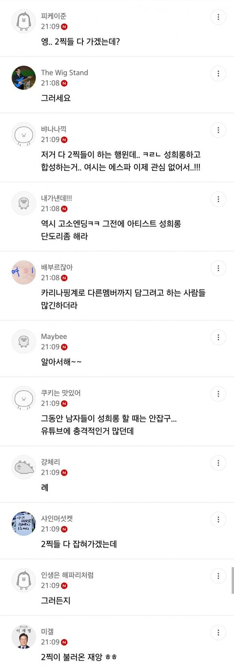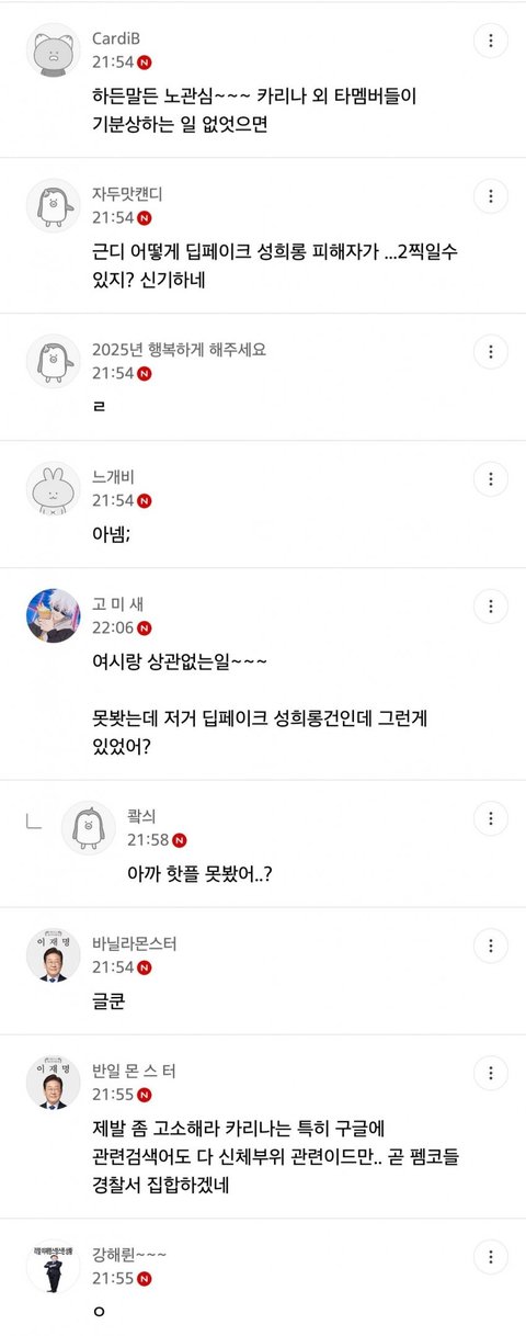ㅅㄱ거리면서 이 답글들쓴 칼프ㄴ아ㅉ카리나 옷 논란 이후에 1찍,2찍한 사람들의 댓글 도배에 뉴스에 나오고 2찍한 아저씨들이 카리나 언급까지 하고..아주 난리도 아니었는데..이건 다 뭐라 설명할꺼야?이래도 오해살만한 행동이 아니다?ㅋㅋ오해살만한 행동인거 인정안하구 억지쉴드에 눈이 돌아가지구 답글로 ㅅㄱ거리면서 대들고 ㅈㅃ졌으니..이래서 카리나팬들이 비호감으로 찍혀서 계속 욕을먹는거임ㅉ