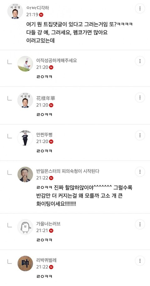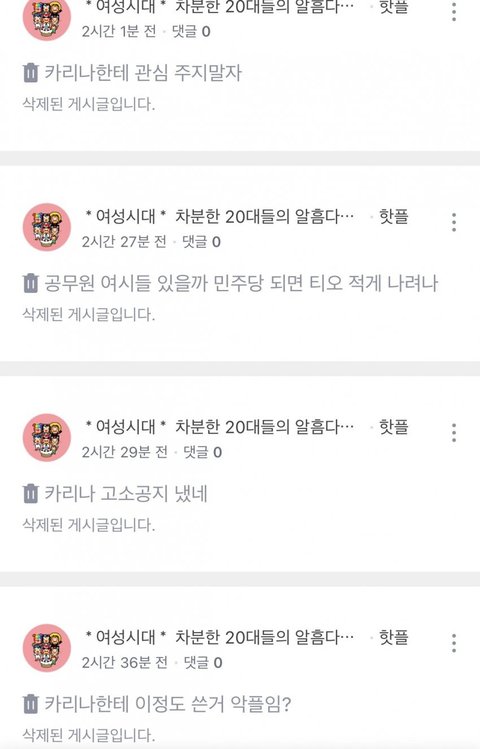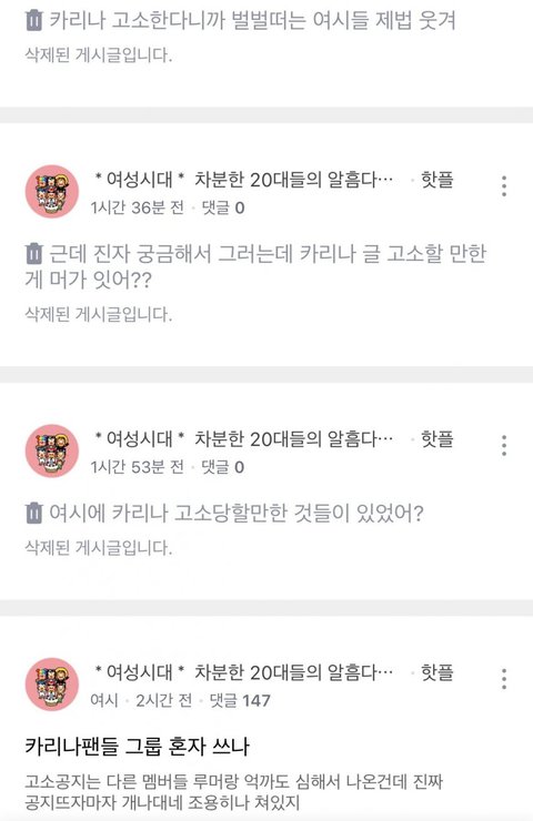 저기 짱깨아줌마들 많은곳 아님? 늙은한남 정치인들 한테 미쳐서는 카리나 욕하네