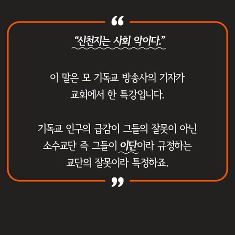 똑같이 성경을 보는 기독교끼리 개종이라 할 수 없는데 한국 사회에서 버젓이 이런 일들이 벌어지고 있다면 믿으시겠습니까?