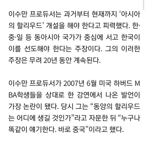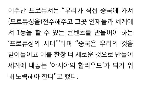동양의 할리우드가 생겨야 한다는 건 ㅇㅈ인데 그게 우리나라여야지 중국을 밀어준다는 건 좀 노인정인데,,, 애초에 c팝이니 이런 거 다 k팝 아류작 아닌가??