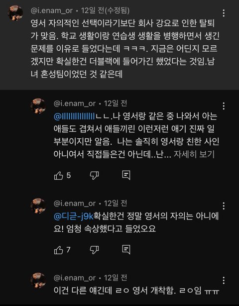 테디 이번에 영서 포함 혼성그룹 나온다고 방금 공식 기사 떴는데, 저사람이 영서 혼성으로 데뷔한다고 2주 전에 맞춤.. 돌판 관계자 인듯