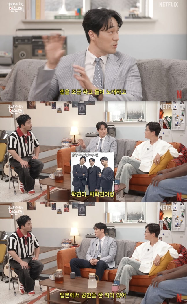 이날 소지섭은 과거 래퍼로 활동했던 일화를 언급하며 "얼마 전에 사무실 친구인 택연이가 노래를 만들었다. 그래서 (옥)택연이랑 나랑 (차)학연이랑 '소옥차'라는 이름으로 일본에서 공연한 적이 있다"고 말했다.