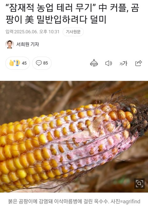 오늘 뉴스보니까 미국에 곰팡이 균도 옮기려다 적발됐더라 이러니까 트럼프가 싫어하지