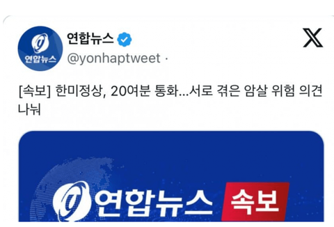 [속보] 한미정상, 20여분 통화…서로 겪은 암살 위험 의견 나눠 | 연합뉴스