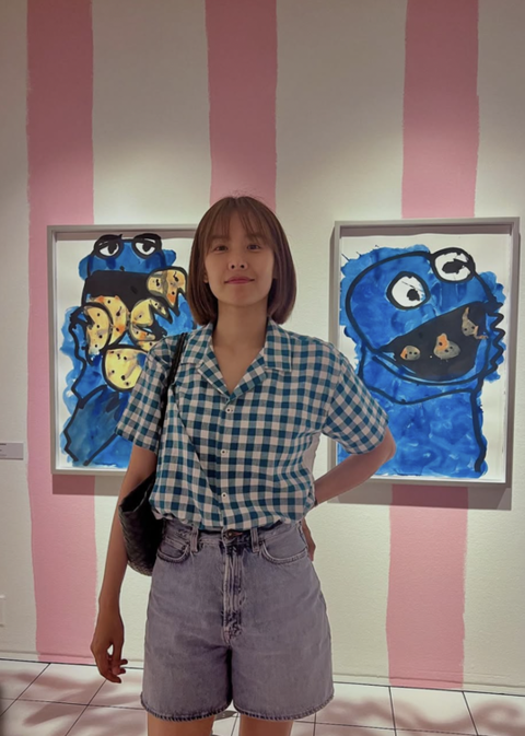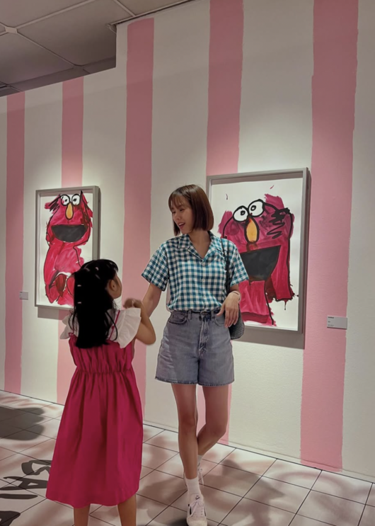 공개된 사진 속 그는 딸 로아와 함께 전시장을 방문해 작품을 관람하고 있는 모습이다.