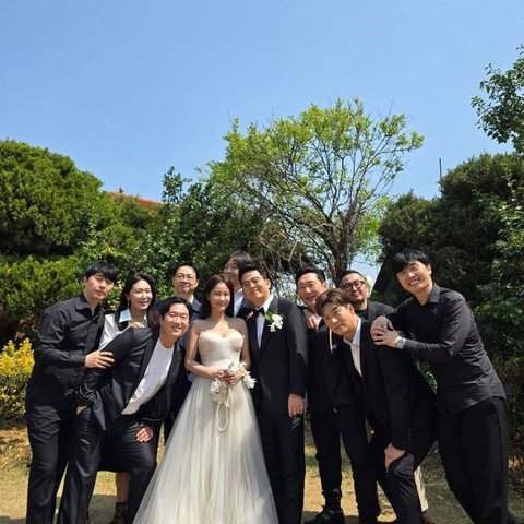 이와 함께 공개한 사진에는 권재관과 이상민, 김경아, 김기열, 안일권, 이승윤, 송병철 등 동료 코미디언들이 김준호, 김지민의 웨딩 화보 촬영 현장이 담겼다. 웨딩드레스를 입은 김지민과 턱시도를 입은 김준호의 모습이 시선을 사로잡는다.