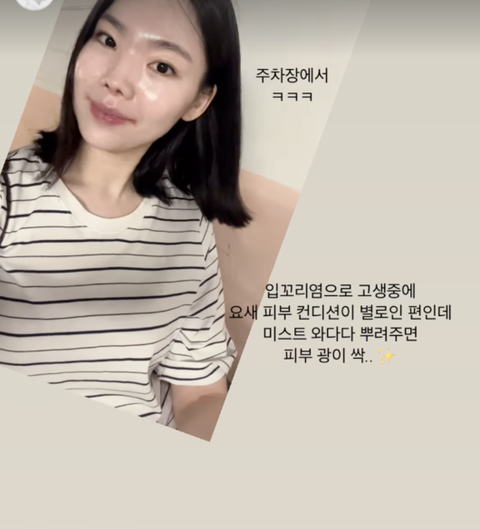 그는 “입꼬리염으로 고생 중에 요새 피부 컨디션이 별로인 편인데, 미스트 와다다 뿌려주면 피부 광이 싹…”이라며 피부 고민을 털어놓았다.