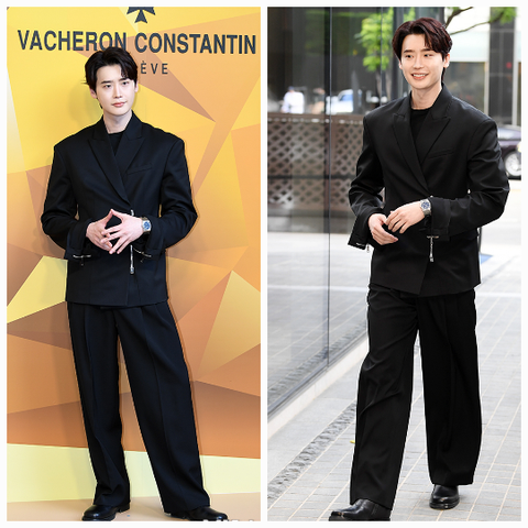 이종석은 재킷과 팬츠 모두 과하지 않은 오버핏 실루엣으로 트렌디한 감각을 드러냈으며, 간결한 블랙 톤에 메탈 디테일로 포인트를 더해 시계 브랜드의 포토월에 어울리는 세련된 포멀룩을 연출했다.