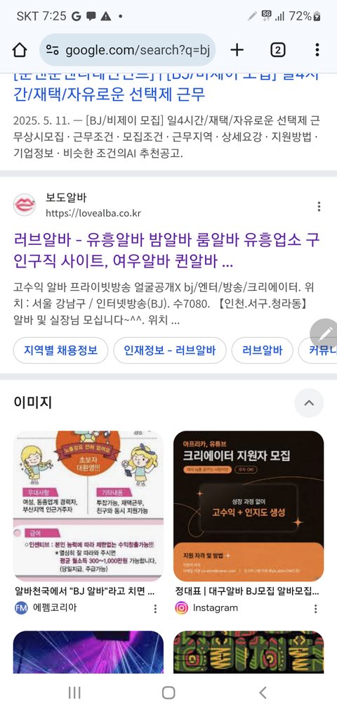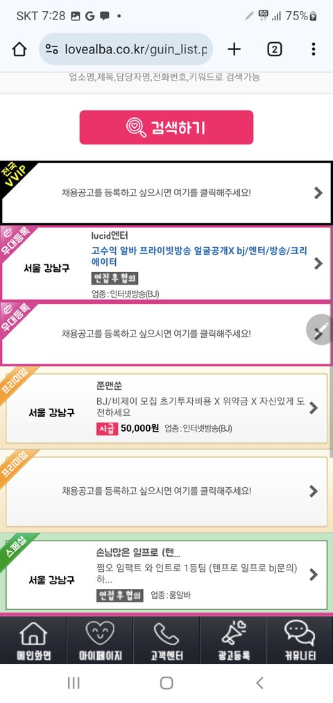 유흥알바 밤알바 모집하는사이트에 bj쳐봤더니