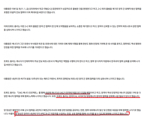 아래의 문장을 보면 한국과 캐나다 양국은 각각 APEC과 G7에서 협력 하자고 했잖아요?