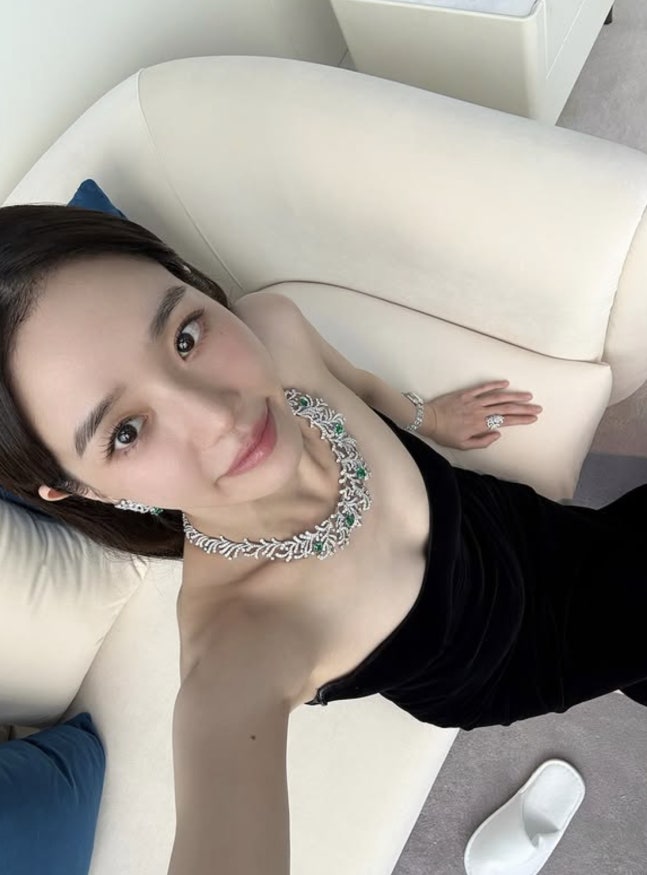 해당 사진에서 그는 깊게 파인 블랙 드레스를 입고, 볼드한 디자인의 하이엔드 목걸이를 매치해 강렬한 존재감을 드러냈다.