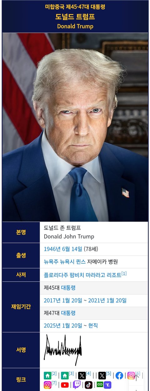 (사진1 설명) 도널드 트럼프 미합중국 제45·47대 대통령 <출처: NAVER 나무위키>