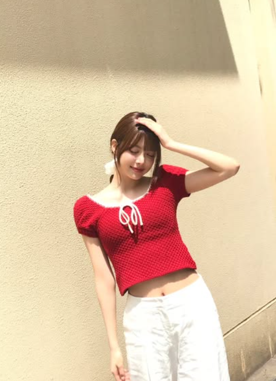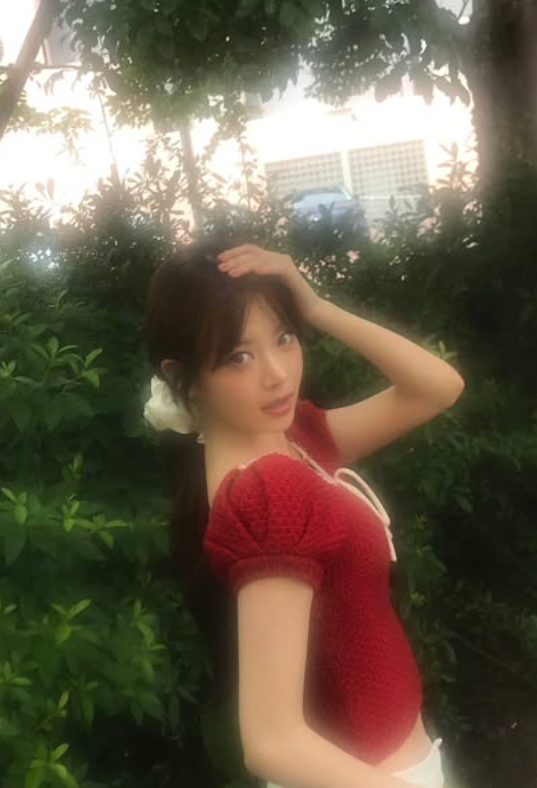 빨간색 반팔 니트와 하얀색 바지로 멋을 낸 그는 다양한 포즈를 취하며 미모를 발산했다.