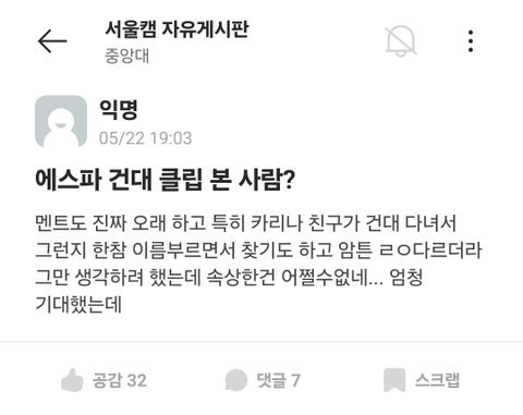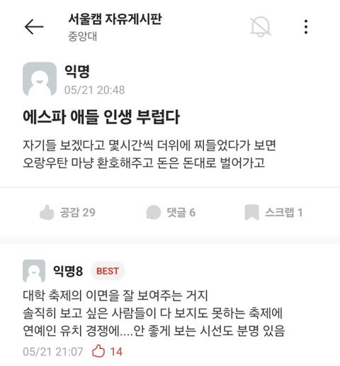 에스파 중앙대 축제 가지고 어쩌구...