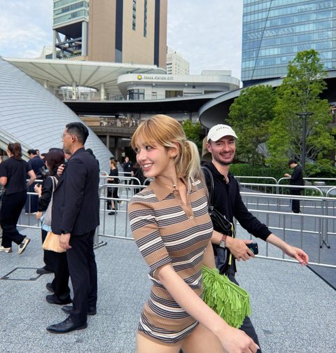 전소미는 이번 사진에서 스트라이프 패턴의 베이지 원피스 차림으로 산뜻한 초여름의 기운을 담아냈다. 반팔의 단정한 니트 소재 원피스는 슬림하게 떨어지는 실루엣이었으며, 깔끔한 칼라와 구분되는 가로줄무늬가 도회적이면서도 경쾌한 인상을 남겼다. 길게 뻗은 금발 머리는 자연스러운 포니테일로 묶여 있었고, 밝게 웃는 표정은 보는 이들마저 기분 좋게 만들었다. 손에는 초록빛 프린지 백을 들어, 옷차림에 생동감을 더했다. 오사카역시티의 현대적인 건물과 열린 광장이 배경으로 펼쳐지며, 일상과 패션의 경계 위에서 자연스러운 스타의 존재감을 극명히 드러냈다.
