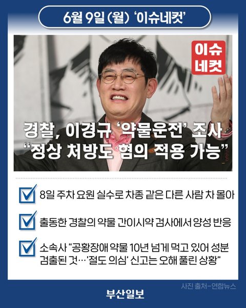 1. 경찰, 이경규 ‘약물운전’ 조사…“정상 처방도 혐의 적용 가능”