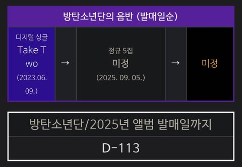 9월 5일 금요일이래 근데 믿거나 말거나인데 이렇게 써있었고 9월은 너무 빠른 감이 있으니 11월 12월 아님 내년 초에 앨범 나오겠다