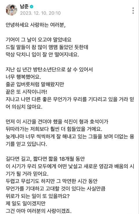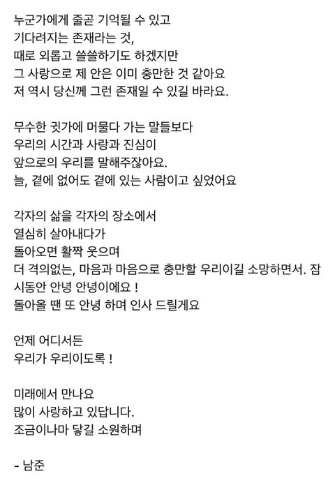 입대 전 알엠뷔 편지