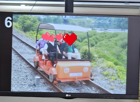 뒤따르던 레일바이크 타고있던 4명의 60대로 보이는 아줌마아저씨들이 "사진찍다가 브레이크를 못잡았어요.. 호호호호" 함.