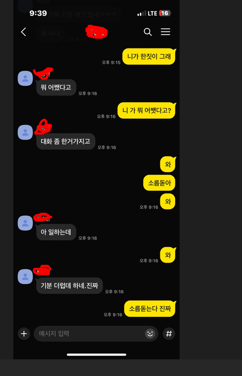 왜 다른사람에게 상처를 주면서 자기말을 정당화 하려하는걸까?헤어지면 되잖아 그때 지금도 앞으로도 헤어지면 되잖아왜? 왜? 걸려서 헤어지나 대화가 안되서 헤어지나차라리 대화가 안되 헤어지자고 그 이유였으면 얼마나 좋았을까,
