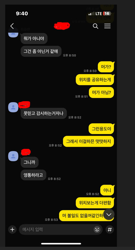 후기)애 셋이라 집으로 다시 들어갔는데위치추적하고, 핸드폰 서로 바꿔쓰자고 말하고 들어갔는데 ㅋㅋㅋㅋㅋㅋㅋㅋㅋㅋㅋㅋㅋㅋㅋㅋㅋㅋㅋㅋ위치 추적을 너무 싫어하네요인권침해래요 ㅋㅋㅋㅋㅋㅋㅋㅋㅋㅋㅋㅋㅋ진짜 소름이네요