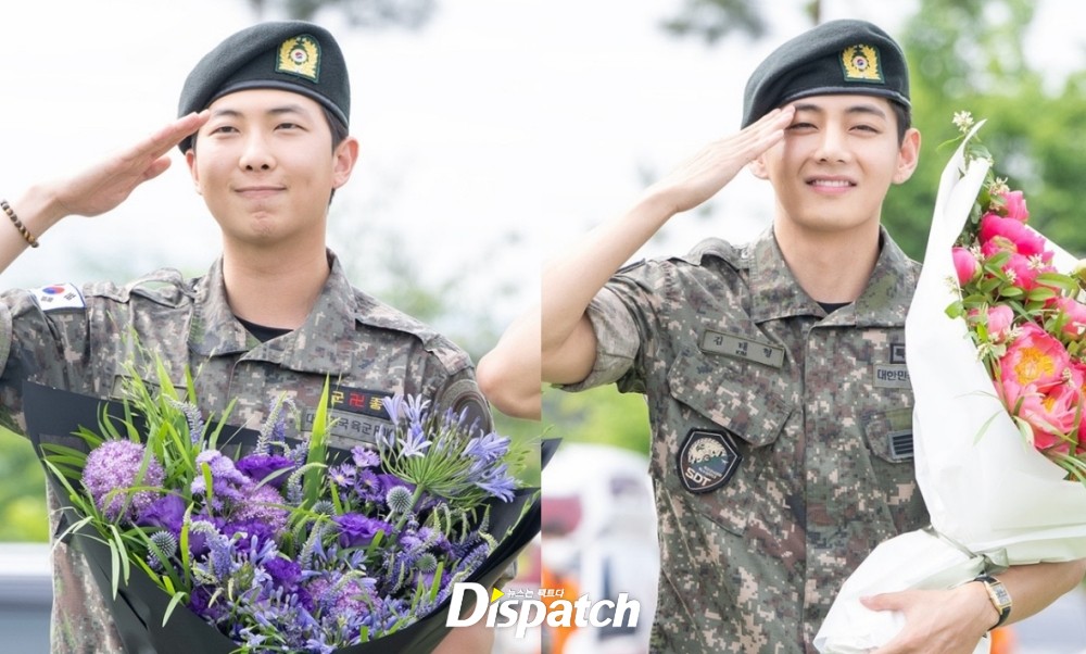 '방탄소년단' RM과 뷔가 무사히 군복무를 마쳤다. 10일 만기 전역했다. RM과 뷔는 강원도 춘천에 모여 합동 인사를 전했다.