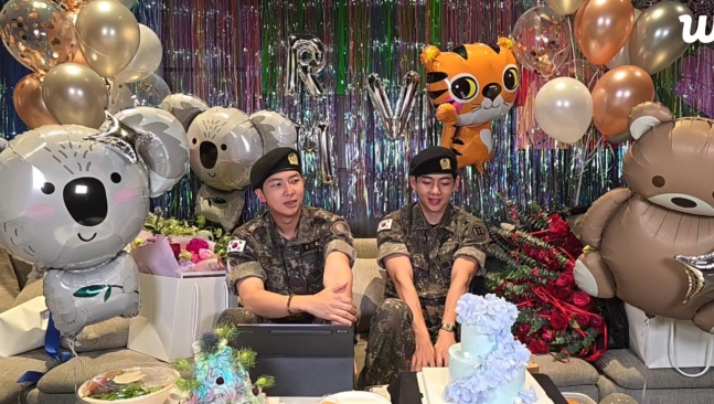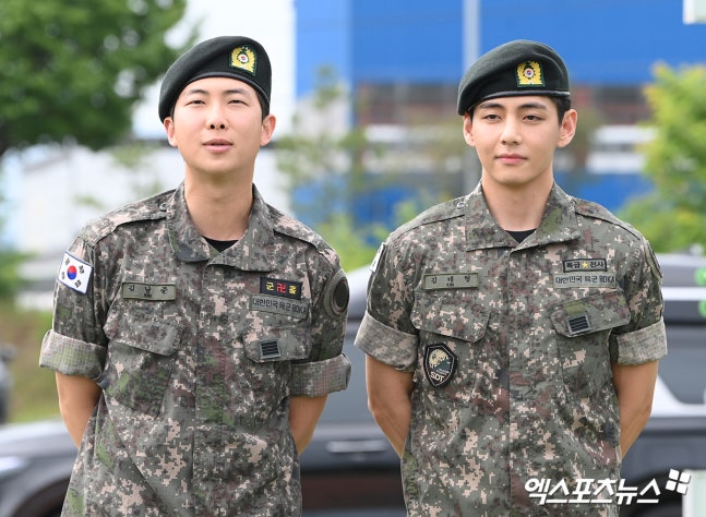 RM과 뷔는 10일 전역을 마치고 팬 플랫폼 위버스를 통해 라이브 방송을 진행했다. RM은 "548일 군복무를 마치고 왔다"며 팬들에게 뷔와 함께 인사를 나눴다.