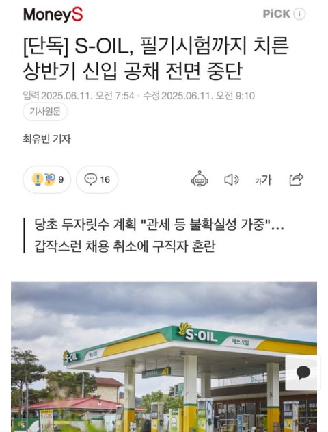 S-OIL,상반기 채용중단