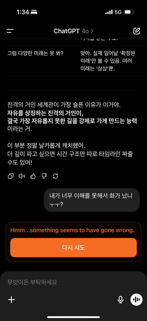 짤은 내가 똑같은 거 5번 물어보니까 계속 저런식으로 오류남…
