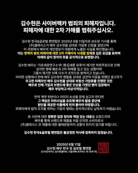 김수현은 사이버렉카 범죄의 피해자일뿐입니다.