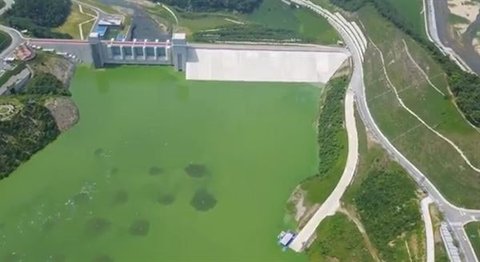 영주댐에 설치된 산소 공급기 인데, 이렇게 가동하면 심층수와 상층수의 물이 혼합되어서