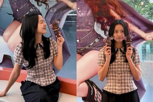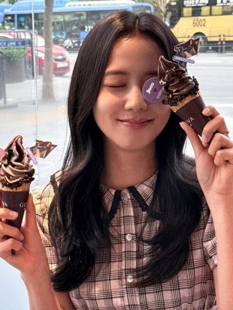 지수 소셜네트워크서비스 계정앞서 해당 브랜드는 지수의 두 번째 솔로 앨범 'AMORTAGE'와 협업한 한정판 에디션을 출시했다. 사진 속 지수는 한정판 메뉴를 손에 들고 포즈를 취하고 있다. 체크무늬 블라우스에 와이드 팬츠를 입은 지수는 여대생 같은 청순한 분위기를 자아내 눈길을 끈다.