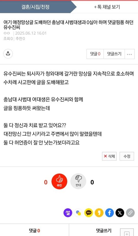 충남대 대학생과 유수진씨 요새는 왜 도배 안 해요?