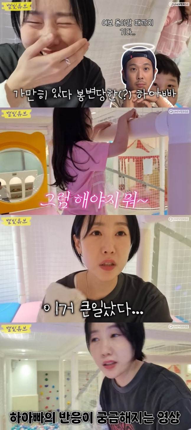 별은 "이거 큰일 났다. 송이 아빠가 이 영상을 보면 어떤 반응을 보일지"라며 남편 하하를 걱정하는 모습을 보였다.