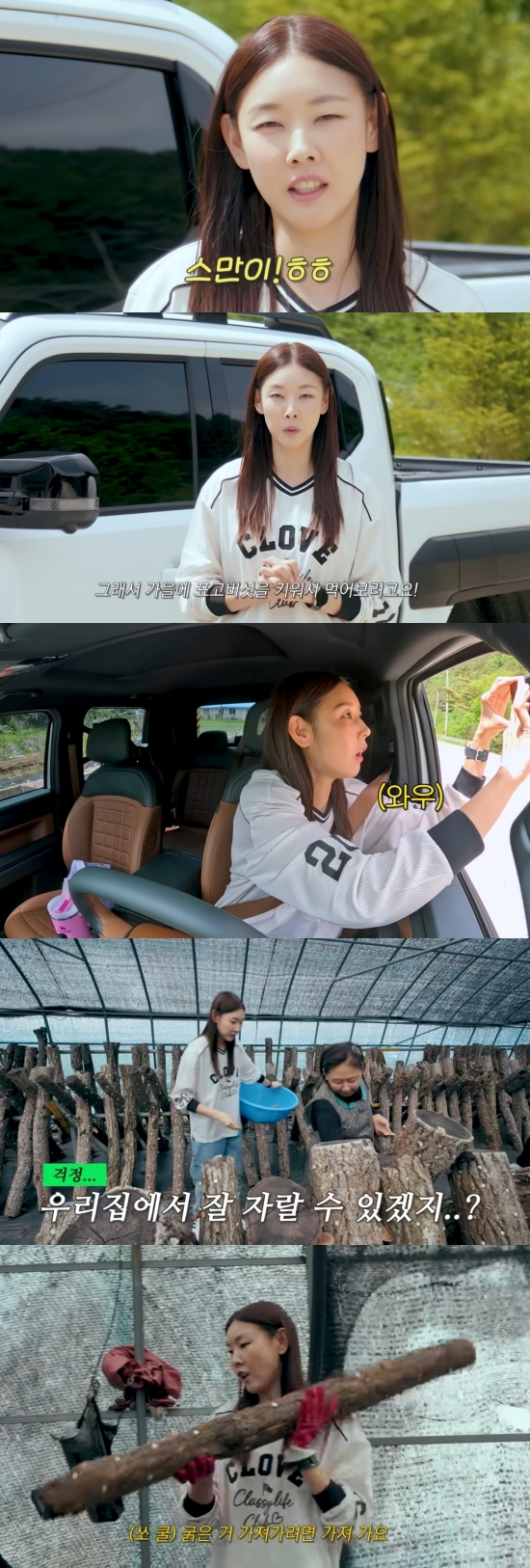 가장 비싼 표고버섯을 포함해 바구니 한가득 수확을 끝낸 한혜진은 표고목을 직접 옮기겠다고 선언하며 "저 오늘 헬스를 안 해서 헬스하려고 왔다"고 여전한 운동 열정을 드러냈다.