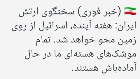 이란이 다음주에 이스라엘 지구상에서 사라질것이라고 썻네요..
