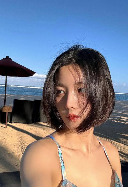 특히 햇살 아래 반짝이는 피부톤과 간결한 메이크업, 그리고 트렌디한 숏컷 스타일이 어우러져 눈길을 끈다.