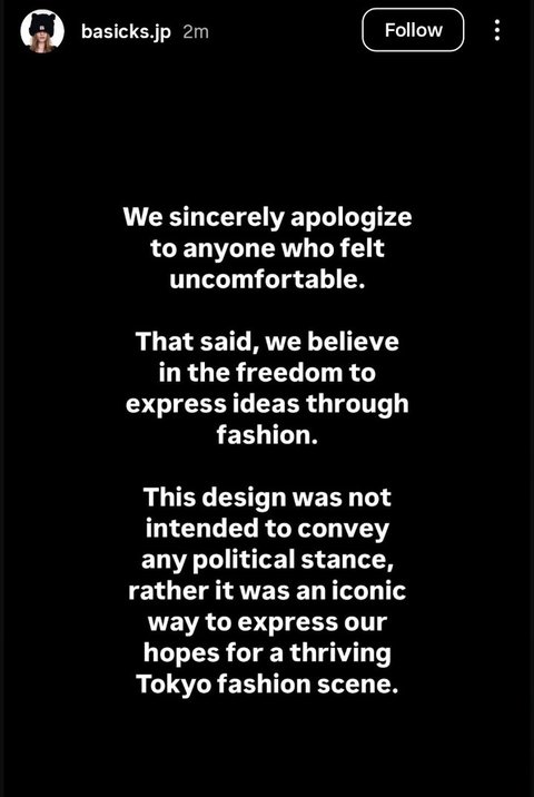 모자 업체에서 도쿄의 패션 부흥을 의미해서 만든 거라고 해명함