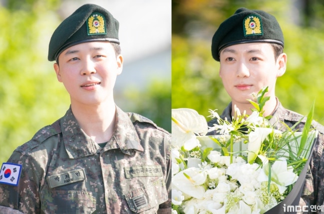 11일엔 지민과 정국이 육군 제5보병사단 복무를 마치고 전역했다. 두 사람은 경기 연천군의 한 운동장에서 열린 기념행사에 참석, 팬들에게 거수경례로 인사했다.