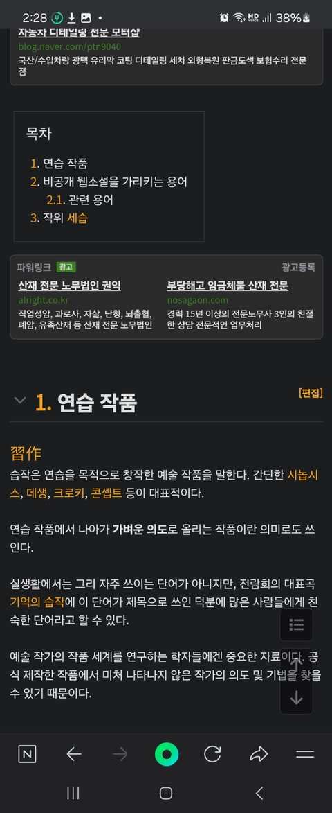 제가 쓴 창작 연습 글을 기억의 습작이라고 좌표를 찍고
