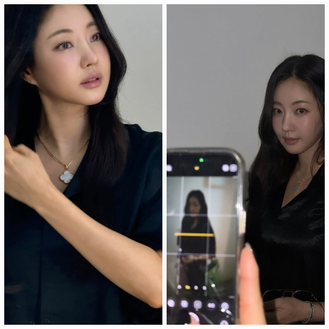 주얼리는 최소한으로, 클라우드 모티프 목걸이 하나로 마무리했고 손목에는 얇은 실버 뱅글과 선글라스를 들고 있어 마치 촬영 현장 대기 중인 듯한 무드가 연출됐다. 그러나 진짜 시선을 사로잡은 건 바로 그가 무심하게 걸친 연둣빛 버킨백.블랙 룩 전체에 단 하나의 컬러 포인트였지만, 오히려 그 대비가 전체 룩을 완성시켰다. 특히 마지막 컷에서는 선글라스를 손에 들고, 천천히 이마를 넘기는 듯한 포즈가 고전적인 영화 속 여주인공을 떠올리게 했다.