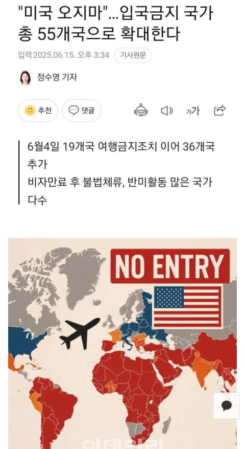 "미국 오지마"…입국금지 국가 총 55개국으로 확대한다