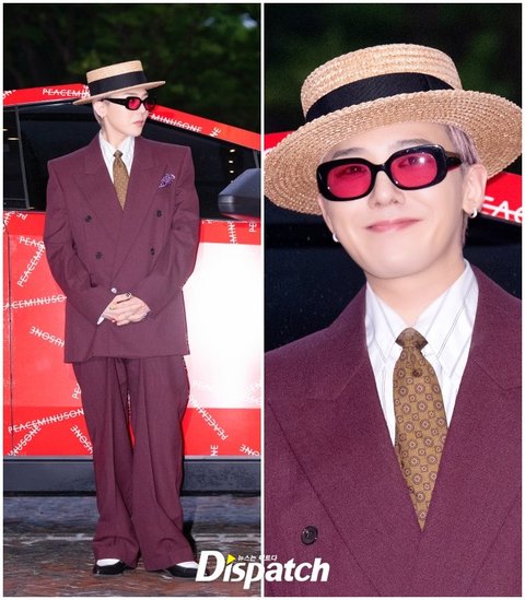 지드래곤은 버건디 수트로 센스 넘치는 패션을 연출했다. 훈훈한 비주얼이 돋보였다.